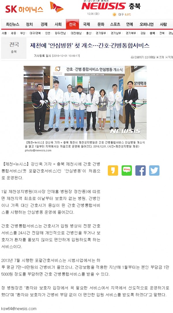 제천에 '안심병원' 첫 개소... 간호간병통합서비스 페이지 정보 언론사 성지병원운영자 작성일16-12-06 17:52 조회2,556회 댓글0건 관련링크 이전글 다음글 목록 본문 제천에 '안심병원' 첫 개소... 간호간병통합서비스 댓글목록 등록된 댓글이 없습니다. 이전글 다음글 목록
