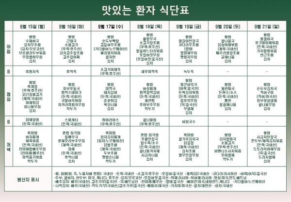 2025년 9월 3주차 <맛있는 환자 식단표> (´。• ◡ •。`) 페이지 정보 작성자 최고관리자 작성일25-09-15 09:08 조회225회 댓글0건 관련링크 이전글 다음글 목록 본문 댓글목록 등록된 댓글이 없습니다. 이전글 다음글 목록