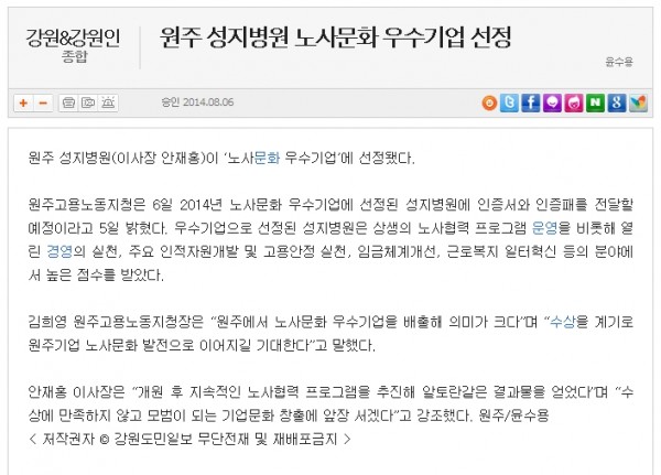 원주 성지병원 노사문화 우수기업 선정 페이지 정보 언론사 성지병원운영자 작성일14-10-30 09:11 조회2,800회 댓글0건 관련링크 이전글 다음글 목록 본문 원주 성지병원 노사문화 우수기업 선정 댓글목록 등록된 댓글이 없습니다. 이전글 다음글 목록