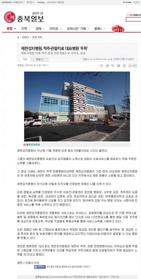제천성지병원, 척추·관절치료 대표병원'우뚝' 페이지 정보 언론사 성지병원운영자 작성일14-04-21 12:16 조회3,051회 댓글0건 관련링크 이전글 다음글 목록 본문 제천성지병원, 척추·관절치료 대표병원'우뚝' 댓글목록 등록된 댓글이 없습니다. 이전글 다음글 목록