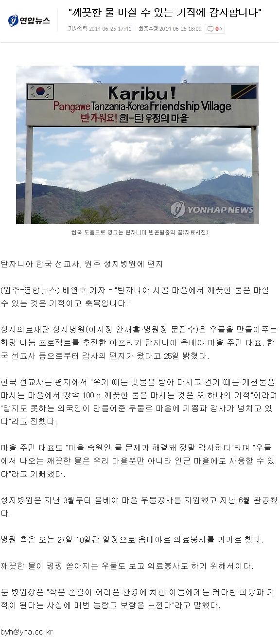 "깨끗한 물 마실 수 있는 기적에 감사합니다" 페이지 정보 언론사 성지병원운영자 작성일14-10-27 17:35 조회2,917회 댓글0건 관련링크 이전글 다음글 목록 본문 "깨끗한 물 마실 수 있는 기적에 감사합니다" 댓글목록 등록된 댓글이 없습니다. 이전글 다음글 목록