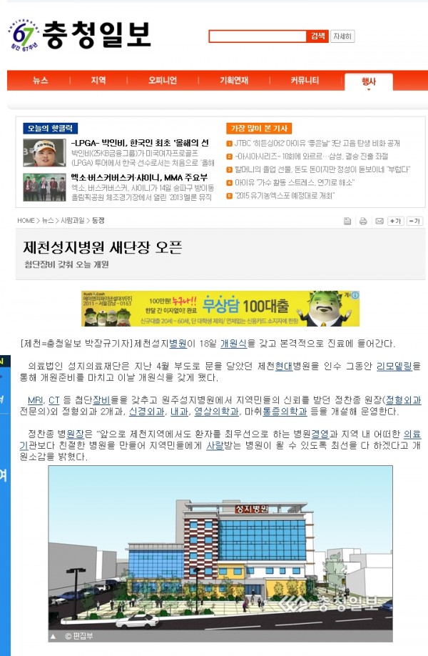 제천성지병원 새단장 오픈 - 첨단장비 갖춰 오늘 개원 페이지 정보 언론사 성지병원운영자 작성일13-12-02 17:51 조회2,632회 댓글0건 관련링크 이전글 다음글 목록 본문 제천성지병원 새단장 오픈 - 첨단장비 갖춰 오늘 개원 댓글목록 등록된 댓글이 없습니다. 이전글 다음글 목록