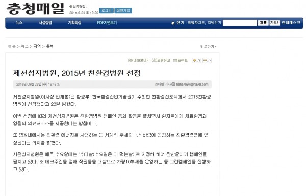 제천성지병원, 2015년 친환경병원 선정 페이지 정보 언론사 성지병원운영자 작성일15-09-25 12:13 조회3,123회 댓글0건 관련링크 이전글 다음글 목록 본문 제천성지병원, 2015년 친환경병원 선정 댓글목록 등록된 댓글이 없습니다. 이전글 다음글 목록