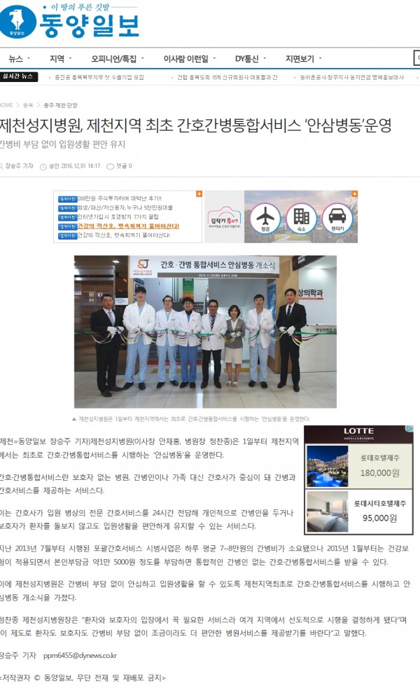 [동양일보] 제천성지병원, 제천지역 최초 간호간병통합서비스 '안심병동' 운영 페이지 정보 언론사 동양일보 작성일17-03-13 18:19 조회5,032회 댓글0건 관련링크 이전글 다음글 목록 본문 제천성지병원, 제천지역 최초 간호간병통합서비스 '안심병동' 운영 댓글목록 등록된 댓글이 없습니다. 이전글 다음글 목록