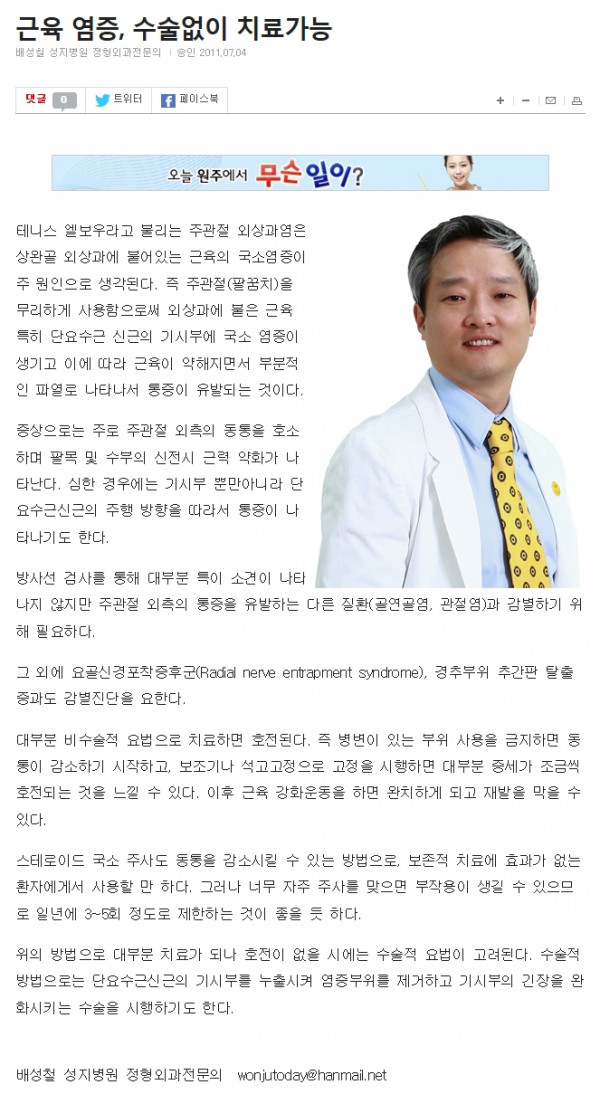 근육 염증, 수술없이 치료가능 페이지 정보 작성자 성지병원운영자 작성일15-11-11 10:52 조회5,426회 댓글0건 관련링크 다음글 목록 답변 본문 근육 염증, 수술없이 치료가능 댓글목록 등록된 댓글이 없습니다. 다음글 목록 답변